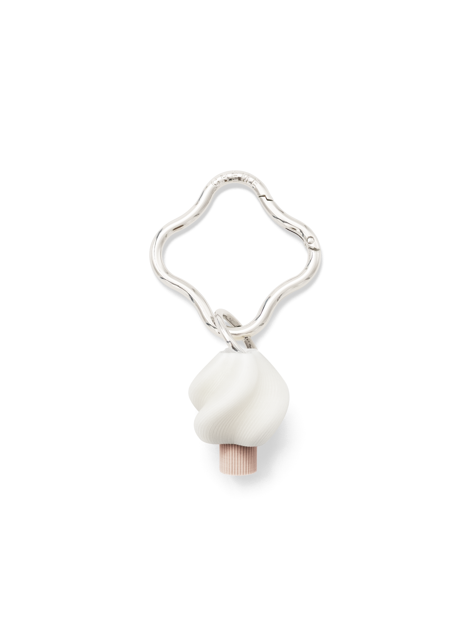 Turning our signature swirl into a charm. Each piece is 3D-printed to order in our Stockholm studio from recycled PLA. Including a flower shaped metal carabiner with silver gloss finish engraved with the CRÈME logo.