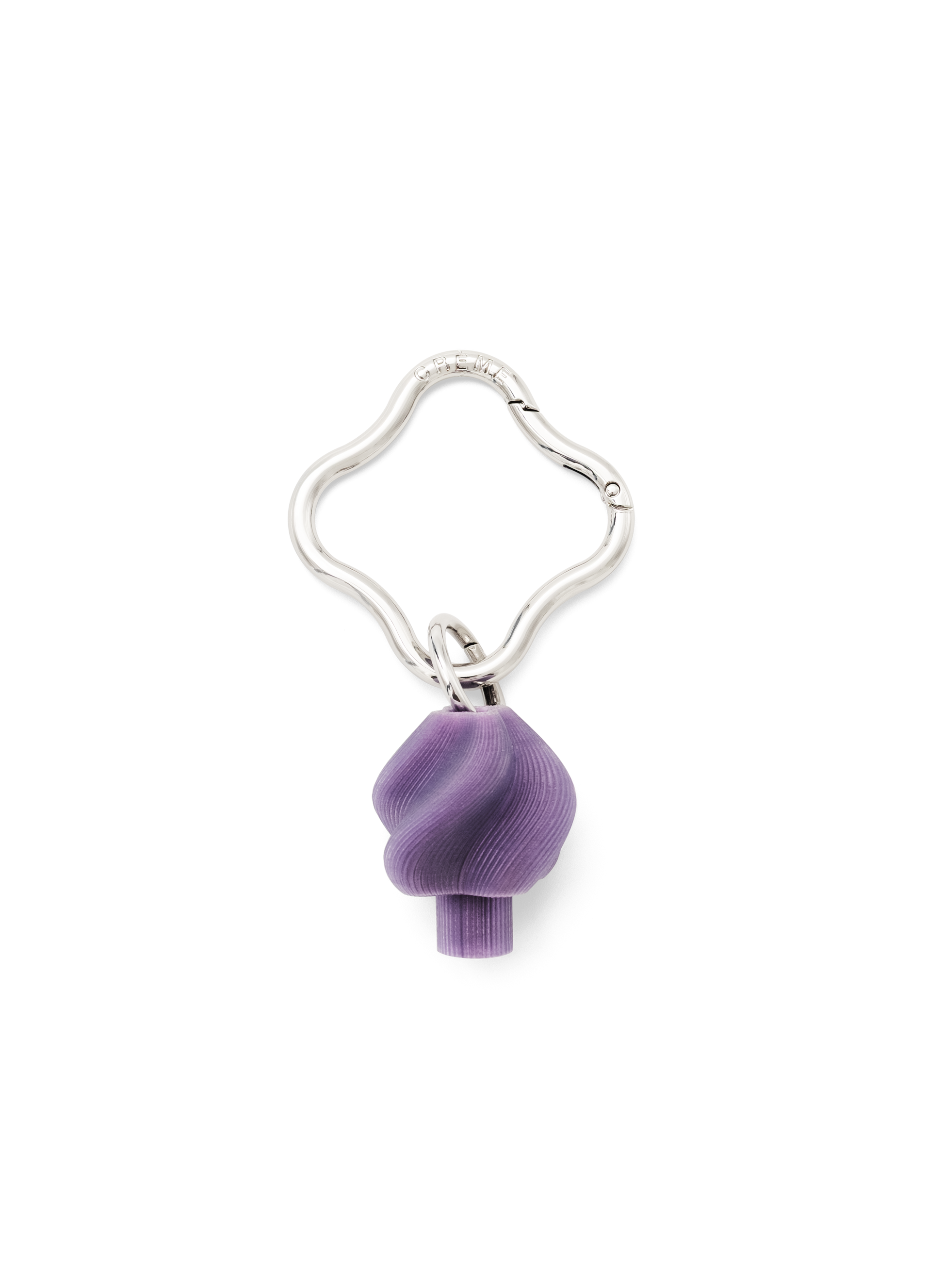 Turning our signature swirl into a charm. Each piece is 3D-printed to order in our Stockholm studio from recycled PLA. Including a flower shaped metal carabiner with silver gloss finish engraved with the CRÈME logo.