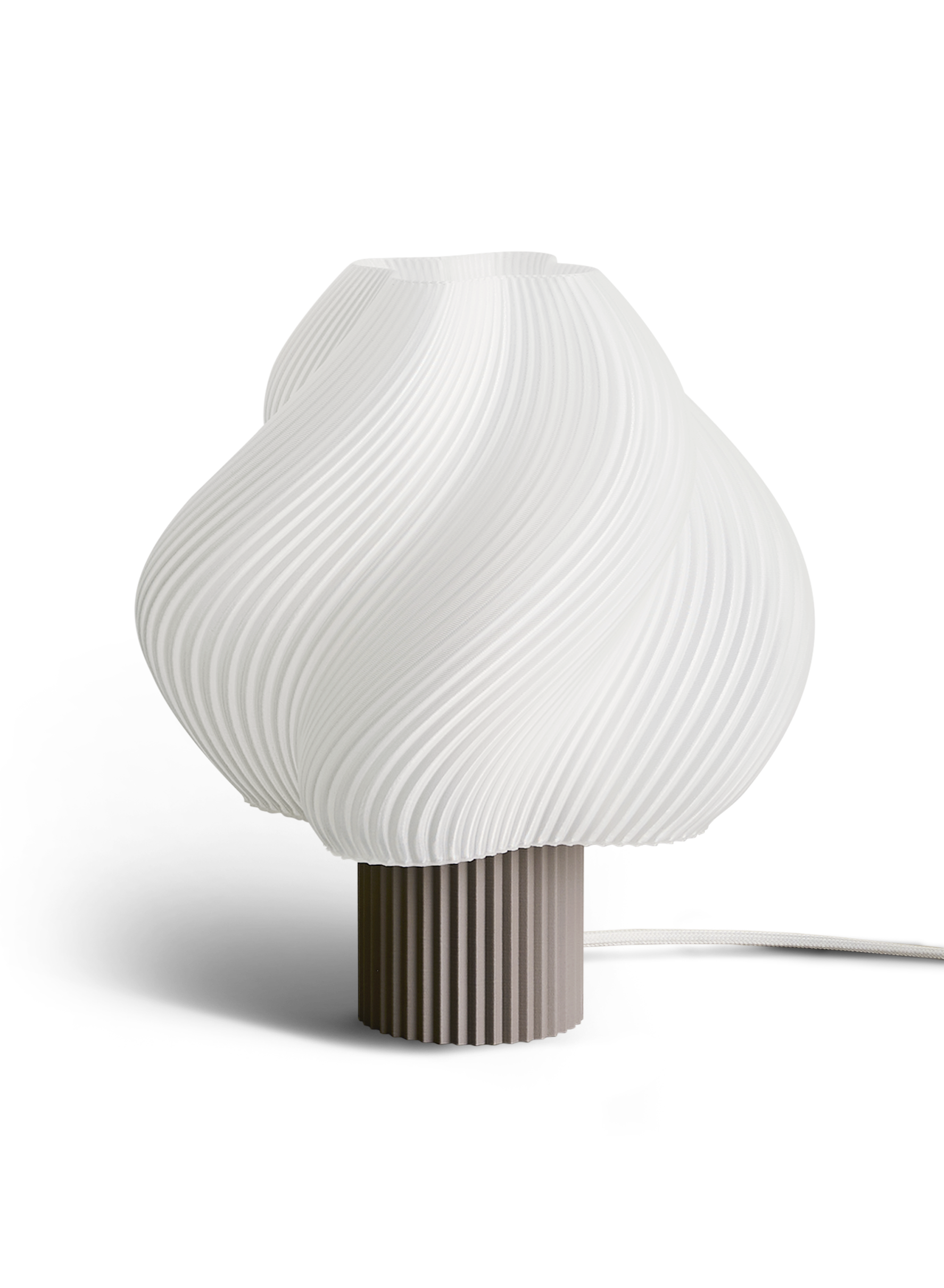 The Soft Serve Lamp is inspired by the smooth, swirling forms of soft serve ice cream, bringing a sculptural softness to any space. With its minimal silhouette and layered texture, it balances playfulness and simplicity in a distinctly Scandinavian expression. Now considered an icon of CRÈME ATELIER’s collection, the Soft Serve lamps has become a recognizable piece in contemporary design circles. Each lamp is 3D-printed to order in our Stockholm studio using recycled PLA, minimizing waste and supporting a more conscious way of creating. Available in a curated palette of 11 hues—from subtle neutrals to vibrant, refined colours—it’s designed to suit a range of interiors while adding a quiet sense of character. The lamp is dimmable, allowing you to adjust the light to suit your mood.